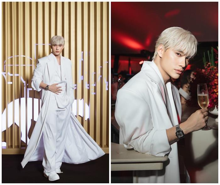 Không kém phần nổi bật, NTK Lý Quí Khánh mang đến outfit “all white” đầy cảm hứng với bộ suit phong cách layers, mix cùng phụ kiện là mẫu đồng hồ Santos De Cartier đẳng cấp.