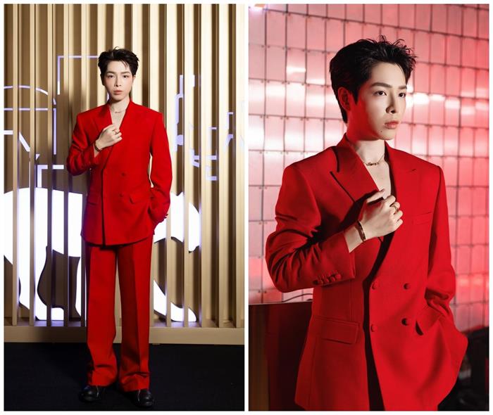 Ca sĩ Đức Phúc cũng không bỏ lỡ cuộc hội ngộ đặc biệt cùng thương hiệu lần này. Quán quân Giọng Hát Việt 2015 đã có màn xuất hiện gây chú ý với phong cách thời trang thăng hạng, khi chọn cho mình bộ suit đỏ đầy lịch lãm và cá tính.