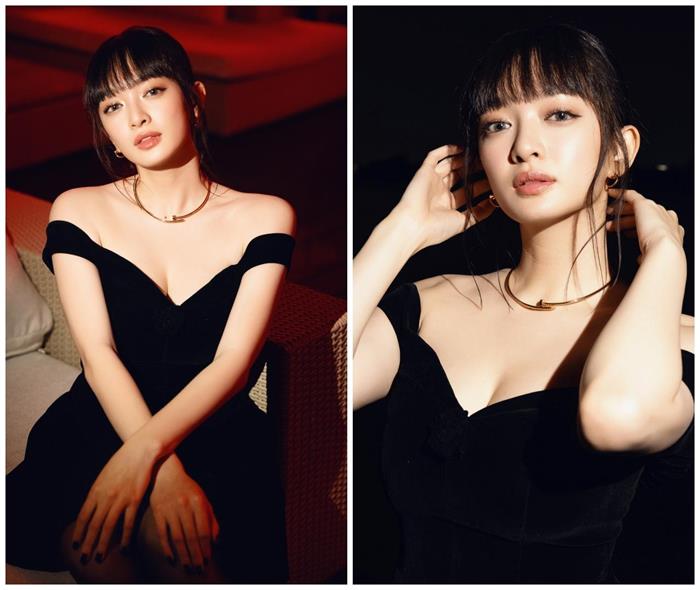 Diễn viên Kaity Nguyễn một lần nữa “đốn tim” người hâm mộ với thiết kế trễ vai đầy gợi cảm, tôn lên những đường nét cơ thể cùng các món trang sức vàng tinh tế nhưng không kém phần quyến rũ.