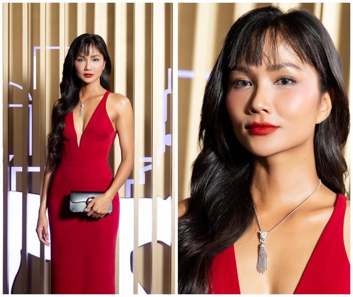Hoa hậu H’Hen Niê khoe vóc dáng vạn người mê khi diện thiết kế đầm hai dây với đường cắt xẻ táo bạo. “Chị đẹp” H’Hen Niê còn khéo léo mix trang phục tông đỏ sang trọng cùng vòng cổ Panthère De Cartier phiên bản custom độc đáo, điểm xuyết ngọc lục bảo và kim cương với trị giá gần 2,2 tỷ đồng.