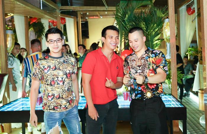 Chủ nhân buổi tiệc thân thiết bên doanh nhân Dương Quốc Nam, fashionista Nguyễn Thu Phương, và diễn viên/người mẫu Quỳnh Thư.