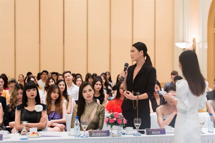 Người đẹp Ngọc Anh- Hoa hậu thân thiện cá tính tại sự kiện với phong cách menswear và phụ kiện vô cùng tinh tế.Cô không ngại chia sẻ cho “đàn em” của mình những bí quyết và tạo niềm tin cho các em khi đứng trước một cuộc thi lớn.