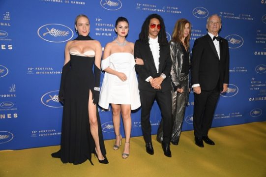 Trong buổi tiệc gala, Selena Gomez thay sang một chiếc đầm trễ vai màu trắng. Và cô vẫn đeo trang sức của BVLGARI. Selena Gomez và các cộng sự trong phim “The Dead Don’t Die” tại đêm tiệc gala khai mạc LHP Cannes lần thứ 72 gồm có (từ trái qua) Chloe Sevigny, Bill Murray, đạo diễn Sara Driver và Luka Sabbat.