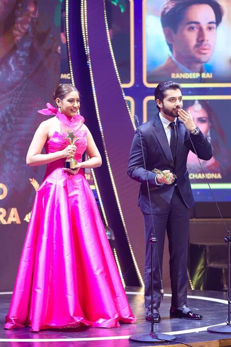 Hai nghệ sĩ Ấn Độ xuất hiện nhận giải trong sự bất ngờ và tiếng reo hò của khán giả