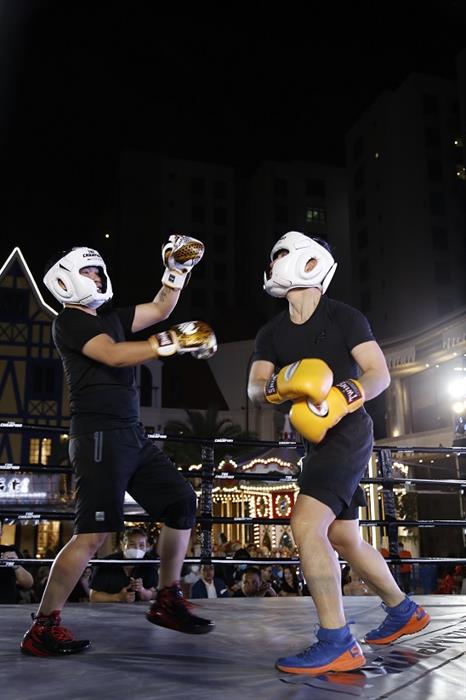 Cặp đấu đầu tiên giữa Ali Hoàng Dương và Xuân Phúc mở màn buổi tiệc boxing. Ali Hoàng Dương chia sẻ: “Tôi cảm thấy rất vinh dự vì được chọn đấu thử, hôm nay, Ali thấy mình đang đấu với một con voi – trận đấu giữa kiến và voi, tôi thua là chuyện bình thường, tôi thắng mới bất ngờ”. Trước chia sẻ của Ali Hoàng Dương, Xuân Phúc liền tiếp lời: “Hôm nay anh sẽ làm bao cát cho em đánh”.