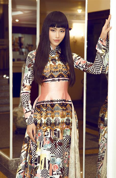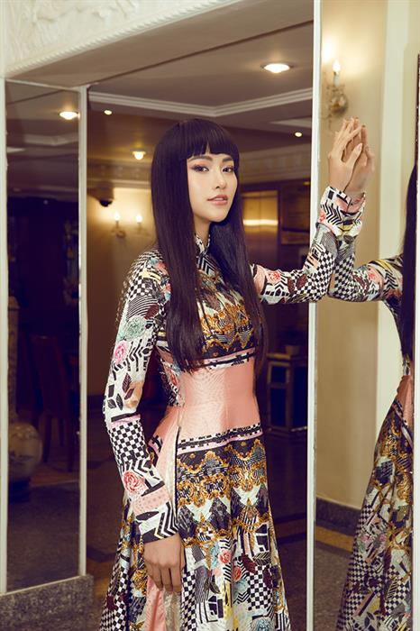 Được biết, tà áo dài mà Hoa hậu Trái đất đang chọn đến từ NTK Việt Hùng. Đây là bộ trang phục mang hơi hướng của nền văn hoá Á Đông. Đi kèm với kiểu tóc thẳng dài của phụ nữ xưa càng tôn lên nét đẹp của người con gái Việt Nam. Với vòng eo 54cm thon gọn, càng làm người đẹp nổi bật tại sự kiện tối qua.