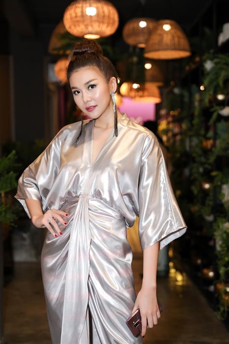 Chiếc đầm ánh bạc xẻ cổ và nhấn vòng eo tôn lên vóc dáng gợi cảm của chân dài 1m12. Phụ kiện khuyên tai dài lấp lánh đi kèm giày cao gót gắn đinh tán đã “nâng tầm” bộ trang phục thêm phần thời thượng. Mái tóc búi cao gọn gàng để lộ gương mặt xinh đẹp, nhiều người vẫn thắc mắc nhờ đâu mà Thanh Hằng lại có vẻ đẹp “hack” tuổi đến vậy.