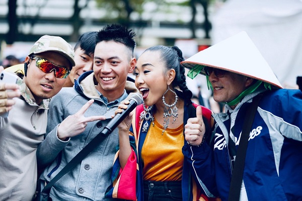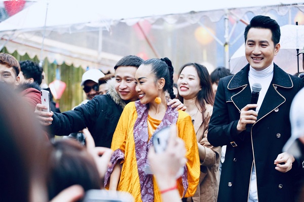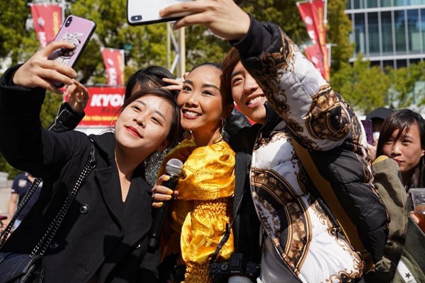 Một khán giả hâm mộ người Nhật chụp hình cùng Đoan Trang