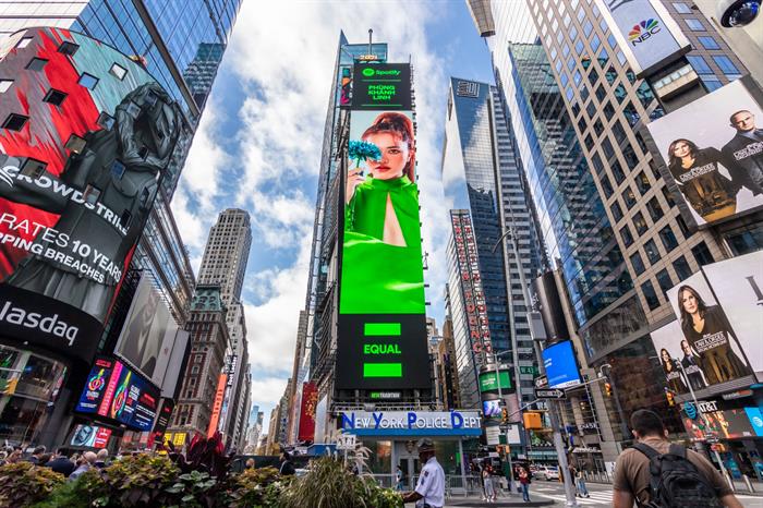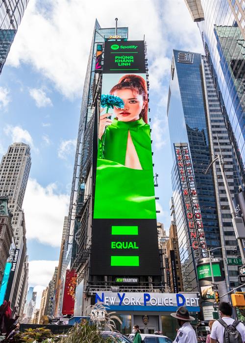 Được biết, cô là tâm điểm âm nhạc tháng 9 tại Việt Nam, trở thành gương mặt đại diện của tháng trong chiến dịch EQUAL toàn cầu của Spotify. Cũng chính vì thế, hình ảnh Phùng Khánh Linh trích từ sản phẩm âm nhạc mới nhất “nhìn em mà xem” (look at me now) xuất hiện tại Quảng Trường Thời Đại nhằm quảng bá, tôn vinh tài năng âm nhạc của các nữ nghệ sĩ trên toàn thế giới.