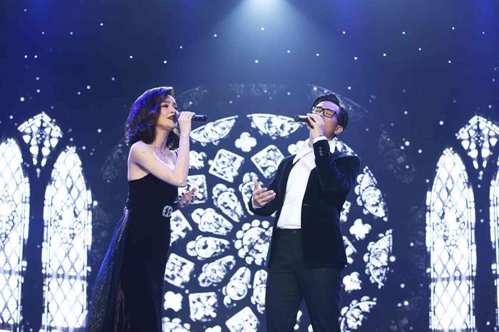 Tintuc - Cả hai mang đến không gian âm nhạc sang trọng, đầy cảm xúc và ngọt ngào với liên khúc những bài hát nổi tiếng của nhau. Sự kết hợp này đã khiến sân khấu như chìm đắm vào một khu vườn âm nhạc vô cùng đẹp mắt.