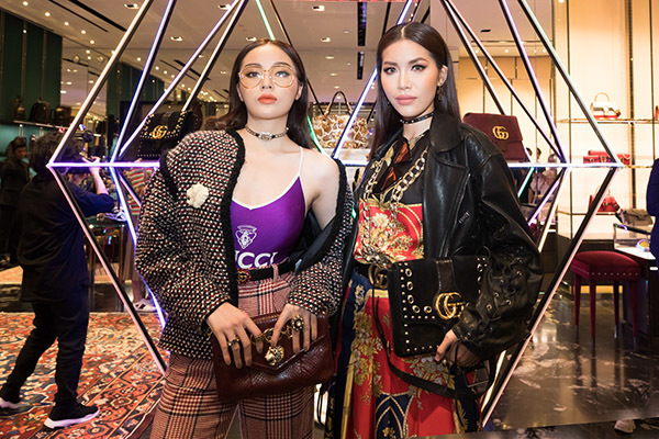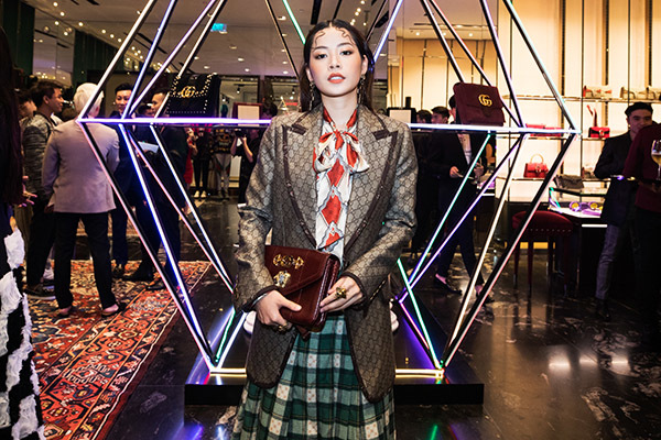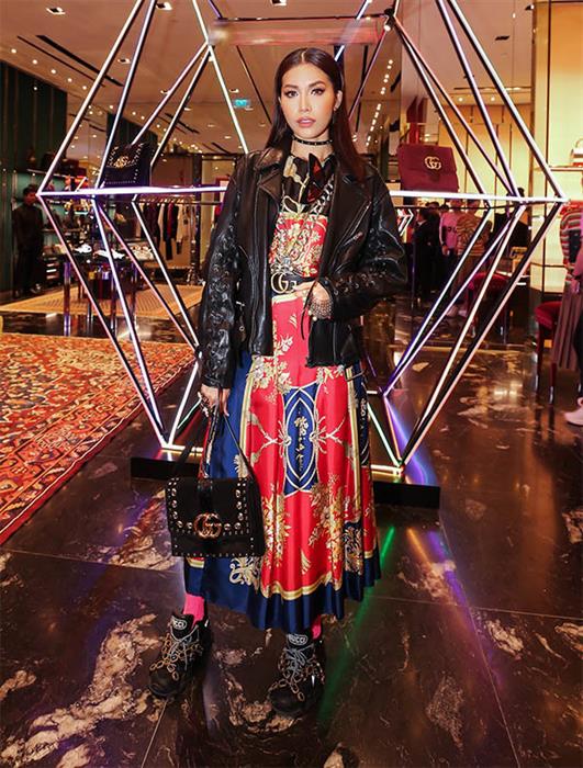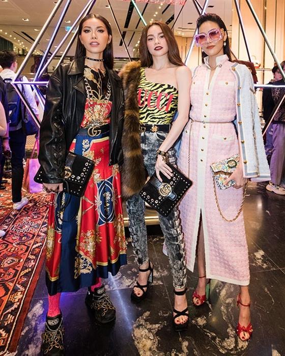 , Lan Khuê, Minh Tú chụp hình cùng nhau sau một thời gian khá dài ít tham gia chung. Cô phối chiếc áo hiệu Gucci lệch vai với áo khoác lông cùng các phụ kiện đen đầy sành điệu, trẻ trung không kém các đàn em dù hơn cả chục tuổi.