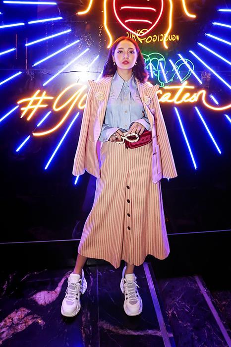 trong trang phục được mix khá hài hòa theo phong cách Gothic. Chi Pu cũng là người rất chịu khó biến hóa về thời trang để làm mới hình ảnh.
