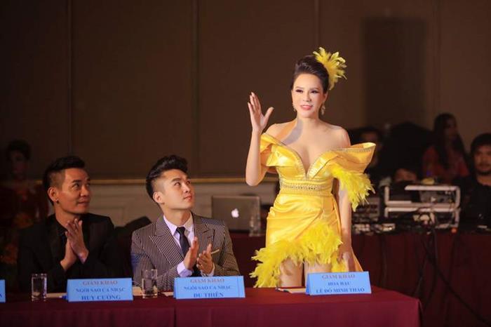 Đêm chung kết, Hoa hậu Minh Thảo thu hút sự chú ý khi đội vương miện và diện đầm dạ hội lấp lánh. Người đẹp tạo được dấu ấn với tác phong làm việc chuyên nghiệp và luôn thân thiện với tất cả mọi người.