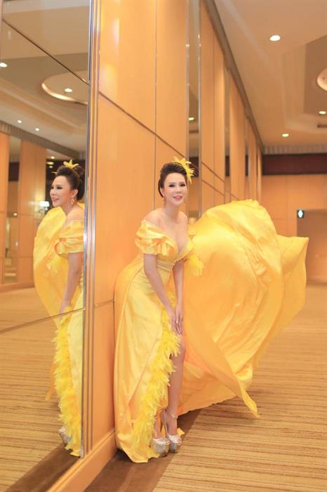 Bên cạnh đó, chiếc đầm với phần tà xòe rộng và điểm nhấn lông vũ cùng màu khiến Minh Thảo như nàng công chúa, bước ra từ truyện cổ.
