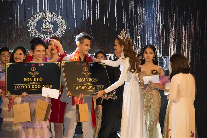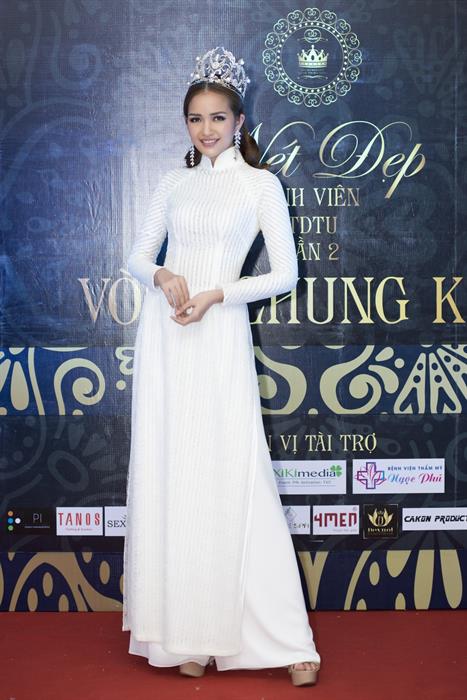Người đẹp sinh năm 1994 thu hút mọi ánh nhìn khi đội vương miện và diện áo dài trắng của NTK Huỳnh Bảo Toàn, trang phục giúp người cô kheo được vóc dáng siêu chuẩn cùng thần thái tự tin, cuốn hút.