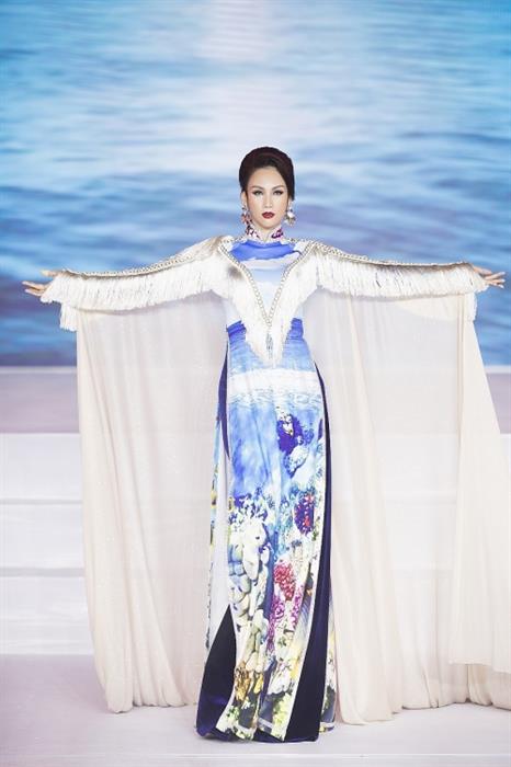 Tại sự kiện, Hoa hậu Paris Vũ đảm nhận vai trò vedette thể hện bộ sưu tập áo dài dủa nhà thiết kế Nhật Dũng. Người đẹp diện mẫu thiết kế tông màu xanh trắng, họa tiết biển sống động được in trên tà áo, là thiết kế đinh nhất bộ sưu tập để sải bước tự tin trên sàn diễn sự kiện.