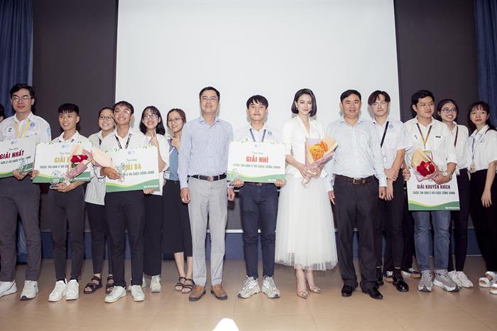 Tintuc - Mỹ nhân đình đám làm giải trí Việt xuất hiện nổi bật trên ghế giám khảo nhờ hình ảnh cuốn hút và thông điệp về môi trường xanh sạch đẹp mà cô tâm huyết và truyền cảm hứng đến sinh viên trường Đại học Luật.