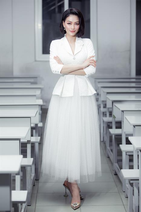 Xuất hiện với vai trò giám khảo, người truyền cảm hứng, Phương Khánh rất chú trọng đến hình ảnh cá nhân. Lần này, người đẹp Bến Tre chọn trang phục thanh lịch với gam màu trắng nhã nhặn. Thiết kế toàn tông trắng của NTK Đỗ Long khá phù hợp với vẻ đẹp nữ tính của hoa hậu. Đây cũng là một trong những phong cách mà Hoa hậu Trái đất hướng đến gần đây khi xuất hiện tại các hoạt động Văn hoá – Giải trí.