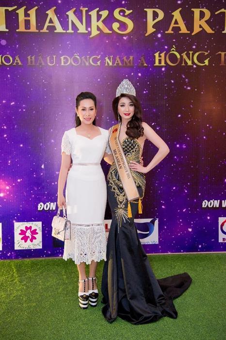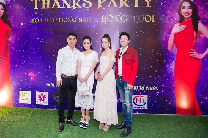 Xuất hiện tại buổi tiệc mừng của Hoa hậu Đông Nam Á Hồng Tươi vào chiều chủ nhật, Hạnh Lê thật rạng ngời và khả ái nổi trội bên cạnh các nhan sắc khác. Cô liên tục chụp hình lưu niệm cùng những người thân thiết trong giới showbiz như nam diễn viên Minh Luân và danh hài Hoàng Mập.