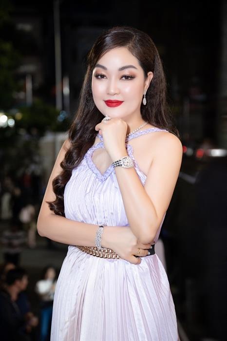 Hoa hậu Thanh Nga xuất hiện. với chiếc váy xếp ly, tông màu trang nhã với điểm nhấn quyến rũ của Brian Võ. Kết hợp cùng những món trang sức đắt giá khiến cô trở nên càng thêm nổi bật khi xuất hiện tại sự kiện.