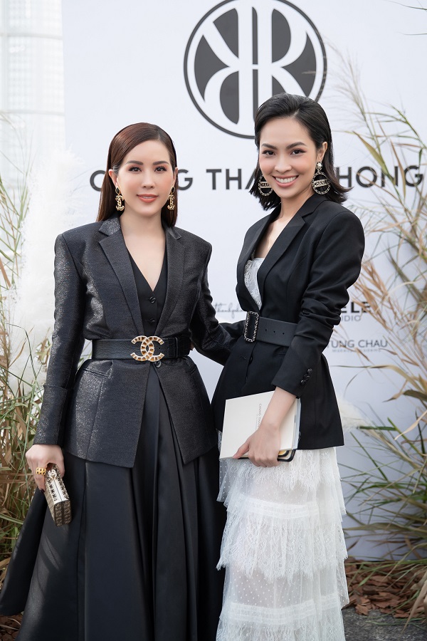 Sánh đôi cùng hoa hậu Thu Hoài đến chúc mừng NTK Chung Thanh Phong là “Miss Ngôi Sao 2011” kiêm người mẫu nổi tiếng một thời Kim Phượng. Đây là lần hiếm hoi Kim Phượng tham gia một sự kiện giải trí sau nhiều năm “ở ẩn”.