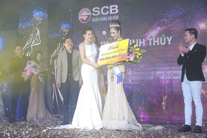 Tintuc - Hoa hậu xinh đẹp xuất hiện trên sân khấu cuộc thi “Miss SCB 2018” trong vai trò giám khảo và tuyên bố sẽ tặng gói làm đẹp trị giá tới 200 triệu cho người đẹp đạt giải quán quân để cổ vũ tinh thần thí sinh.