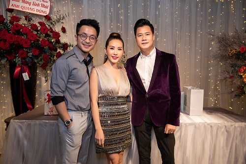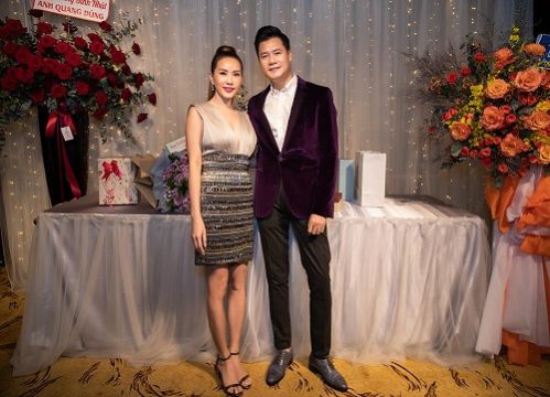 Ngay tại bàn tiệc, bên cạnh việc chung vui với ca sĩ Quang Dũng, hoa hậu Thu Hoài còn thoải mái chụp hình “tự sướng” với bạn trai doanh nhân. Do không hoạt động trong làng giải trí, trước đây người yêu Thu Hoài còn đôi chút e ngại khi tiếp xúc với các nghệ sĩ. Nhưng thời gian gần đây, anh thoải mái hơn khi đi sự kiện cùng người yêu, thậm chí còn hỗ trợ Thu Hoài thực hiện các chương trình tri ân khách hàng, có nghệ sĩ tham gia biểu diễn.