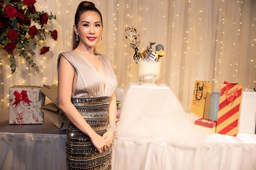 Ngoài bộ trang phục đẳng cấp, hoa hậu Thu Hoài còn sử dụng thêm nhiều trang sức đắt tiền như: Nhẫn, bông tai, vòng tay… và thể hiện sự trẻ trung qua cách trang điểm, kiểu tóc búi cao. Có thể thấy dù tham gia các sự kiện hoành tráng của làng giải trí hay tới dự những bữa tiệc ấm cúng, Thu Hoài đều rất chỉn chu về mặt hình ảnh.