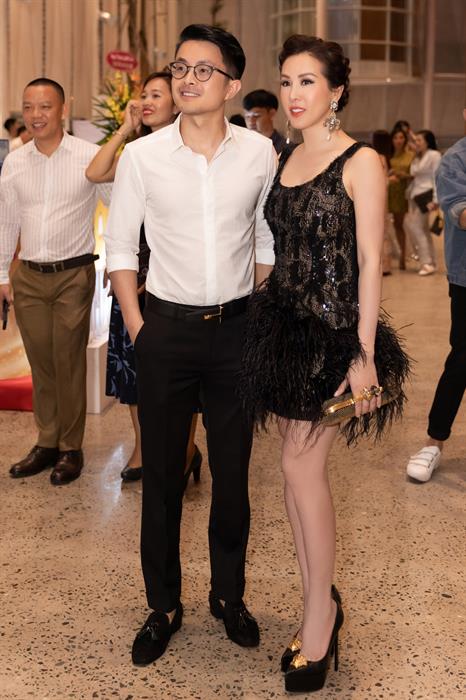 Xuất hiện trước đám đông, hoa hậu Thu Hoài gây chú ý khi diện đầm ngắn gợi cảm, kết hợp với những món phụ kiện sành điệu như: giày Versace, bông tai Dolce & Gabbana, đồng hồ Richard Mille, ví Alexander Mcqueen... trong khi đó, bạn trai doanh nhân của hoa hậu Thu Hoài vẫn giữ phong cách lịch lãm thường thấy khi mặc sơ mi trắng kết hợp với quần âu trẻ trung.