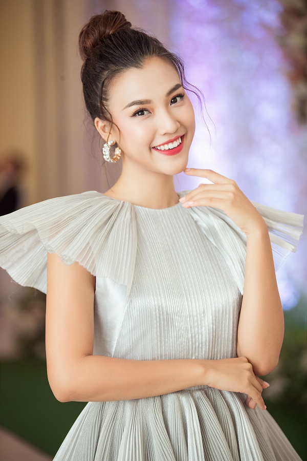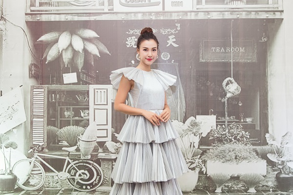 Xuất hiện với vẻ ngoài trẻ trung nhưng không kém phần lộng lẫy như một công chúa, nàng Pha Lê của “Ước hẹn mùa thu” diện chiếc váy tầng xinh xắn cùng kiểu tóc búi cao và nét trang điểm nhẹ nhàng khiến cô nhanh chóng trở thành “tâm điểm”.