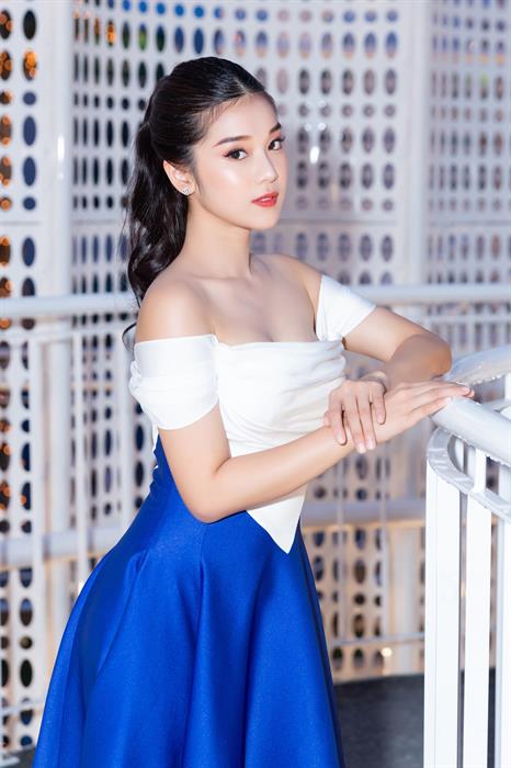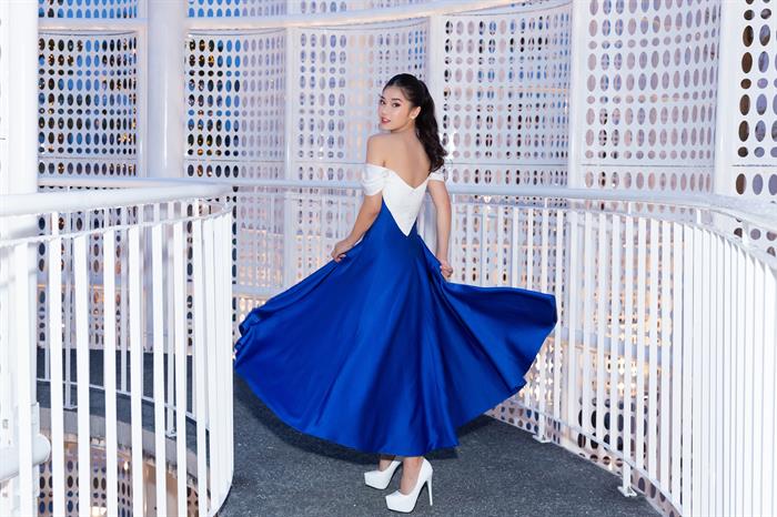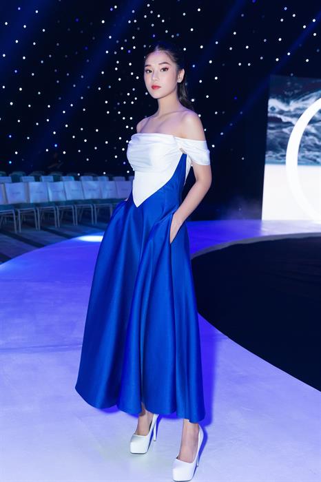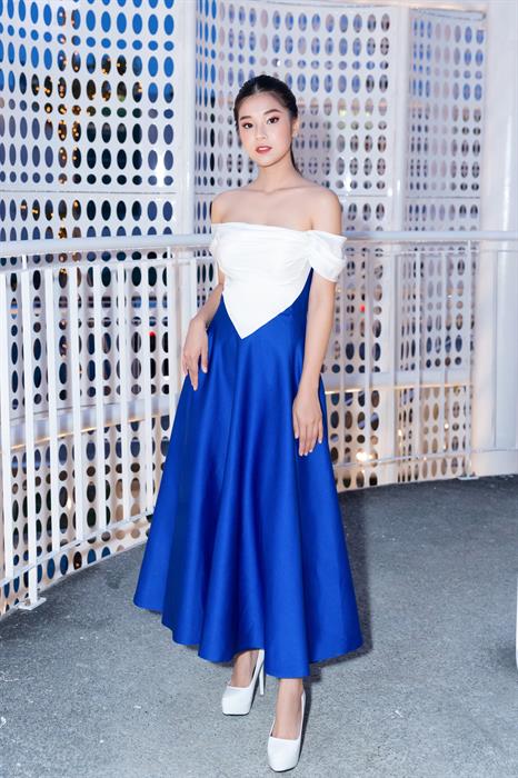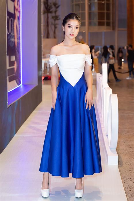 Tintuc - Tối 2/6, Hoàng Yến Chibi tham dự một sự kiện tại TP HCM. Cô gây bất ngờ khi xuất hiện với hình ảnh khác lạ khi khoe vai trần gợi cảm. Bộ cánh của NTK Đỗ Long mix giữa hai màu xanh nước biển và trắng với những đường cắt, cúp khá tinh tế. Nó giúp nữ ca sĩ 9x khoe được vai trần và vòng một gợi cảm. Lối make up tươi trẻ khiến nữ diễn viên càng trở nên nổi bật.