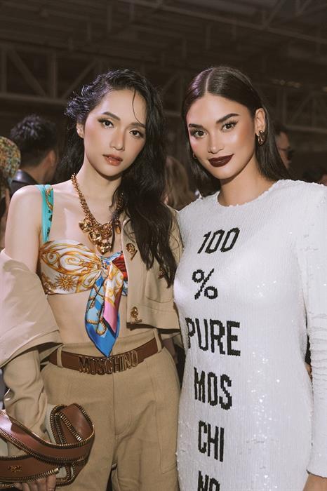 Dù lịch trình bận rộn trong khoảng thời gian này, Hoa hậu Hương Giang đã có những giây phút vui vẻ tại show diễn của Moschino. Nàng hậu cũng thân mật trò chuyện cùng các khách mời và để lại nhiều ấn tượng trước truyền thông quốc tế.