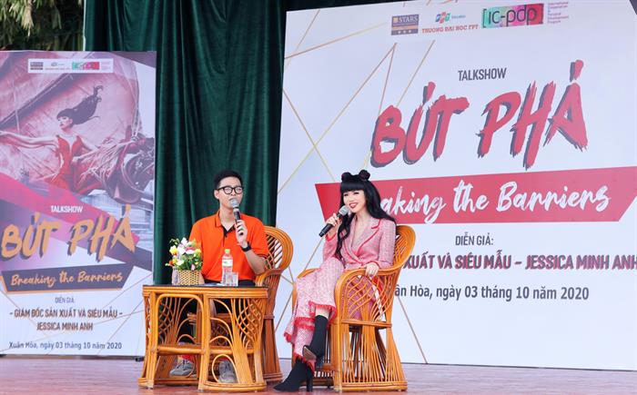 Được các kênh truyền thông nổi tiếng trên thế giới ưu ái với danh hiệu “nữ hoàng của những sàn diễn không tưởng”, Jessica Minh Anh đã chia sẻ câu chuyện thành công của cô trong talkshow “Bứt phá – Breaking the Barriers” tại Trung tâm Giáo dục Quốc phòng & An ninh, Đại học Sư phạm Hà Nội 2 (Xuân Hòa) và Trường quân sự Bộ tư lệnh Thủ đô (Sơn Tây).