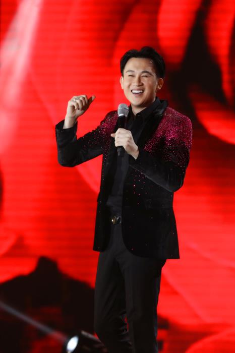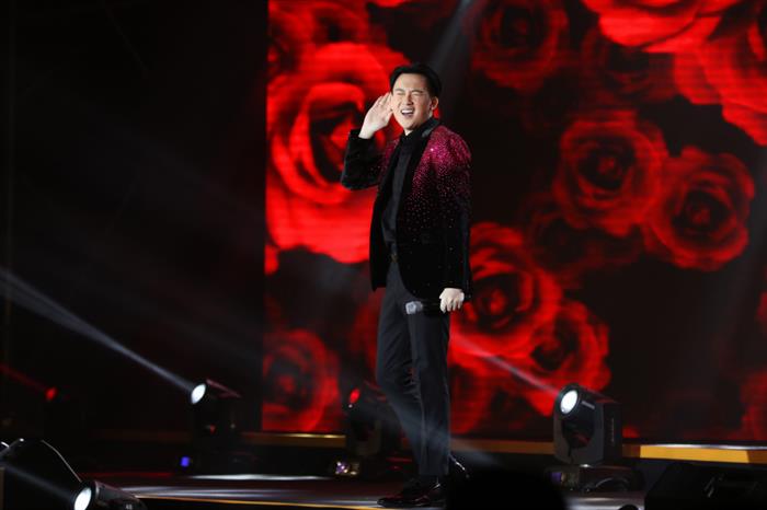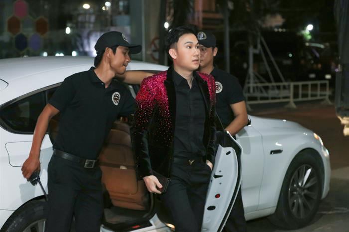 Nam ca sĩ xuất hiện khá sớm, điển trai trong bộ suit đen, phần vest được cách điệu với ánh hồng lấp lánh. Dù trời mưa nhưng anh rất hào hứng khi có thể tham dự vào chương trình ý nghĩa tri ân tất cả các y bác sĩ, quân nhân, đội ngũ tình nguyện viên – những người đã và đang “trực chiến” với đại dịch Covid -19.