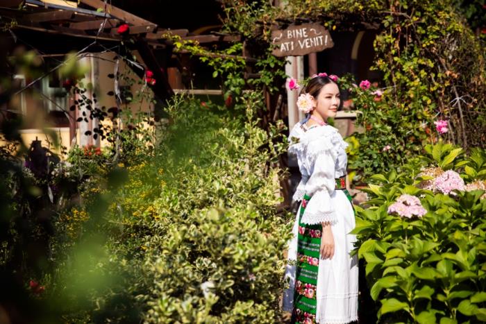 Tintuc - Diện trang phục truyền thống của Romania để tiếp khách, Lý Nhã Kỳ được đánh giá cao bởi sự khéo léo, trẻ trung.