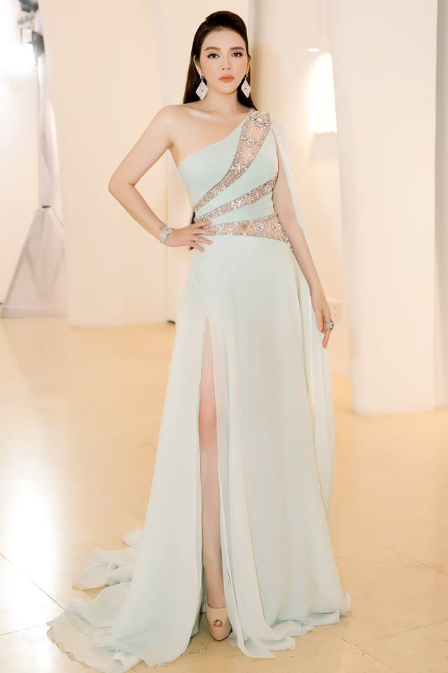 Người đẹp diện chiếc đầm dạ hội với những đường cắt xuyên thấu của NTK Đỗ Long. Bộ cánh giúp cô khoe triệt để những đường cong cơ thể quyến rũ. Các phụ kiện kim cương của Paolo Piovan giúp Lý Nhã Kỳ hoàn thiện set trang phục sang trọng trên thảm đỏ.