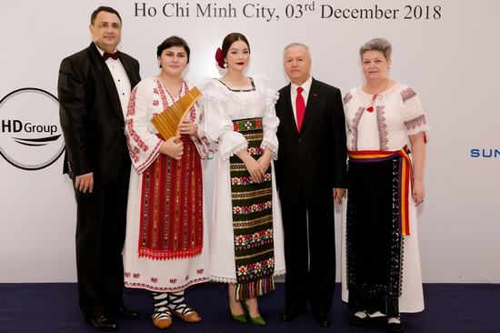 Tintuc - Tối 3/12, Lãnh sự quán Romania tại TP.HCM đã tổ chức tiệc chiêu đãi trọng thể nhân kỷ niệm 100 năm ngày Quốc khánh Romania tại khách sạn Park Hyatt Q.1.