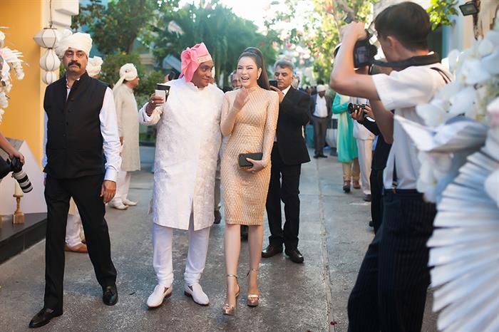 Lãnh sự danh dự Lý Nhã Kỳ bay ra Phú Quốc hôm 9.3 góp mặt trong đám cưới ngàn tỉ này theo lời mời của nhà sáng lập thương hiệu trang sức Outhouse. Lý Nhã Kỳ chọn đầm Chung Thanh Phong và phong cách làm tóc, trang điểm ấn tượng. Cô còn khéo léo lựa chon chiếc clutch màu gold và trang sức khim cương thương hiệu deGrisogono tinh tế. Như mọi bữa tiệc góp mặt, nữ diễn viên toát lên phong cách quyến rũ, thần thái tự tin, lối ứng xử chuẩn mực gây thiện cảm với người đối diện. Dù trong đám đông khách, người đẹp Vũng Tàu cũng tỏa ra thần thái riêng biệt. Cô vinh dự được gia đình tỉ phú đón tiếp nồng hậu và cô cũng là ngôi sao giải trí Việt duy nhất được mời đến sự kiện này. "Tôi may mắn khi được sánh bước cùng ngài đại sứ Phạm Sanh Châu. Đại sứ Việt Nam tại Ấn Độ luôn là người tôi muốn học hỏi trong lĩnh vực ngoại giao", Lãnh sự danh dự Rumani cho biết. Bên cạnh đó, chuyên môn về kinh doanh mặt hàng nữ trang cao cấp cũng giúp cho Lý Nhã Kỳ hoàn toàn hòa nhập với gia đình tỉ phú đến từ xứ Phật giáo.
