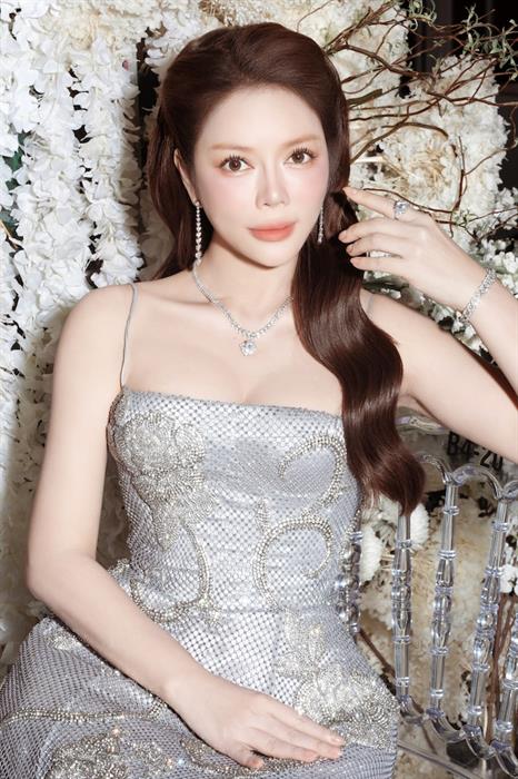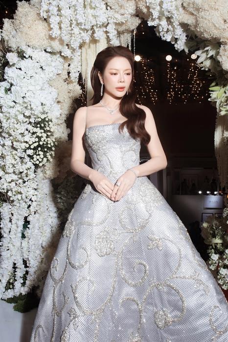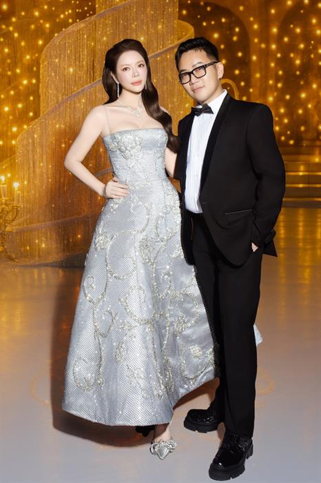 Như tại show của Chung Thanh Phong, Lý Nhã Kỳ không chỉ đơn thuần là một khách mời. Cô hóa thân thành nàng thơ, khoe trọn vẻ đẹp lộng lẫy trong bộ đầm corset ôm sát, chân váy xòe chữ A, được làm từ chất liệu vải ép đá màu ánh bạc độc quyền. Sự lấp lánh như pha lê khi chuyển động, cùng kỹ thuật thêu đính thủ công tinh xảo, đã biến bộ trang phục thành một tác phẩm nghệ thuật, và Lý Nhã Kỳ chính là “người truyền tải” hoàn hảo nhất.