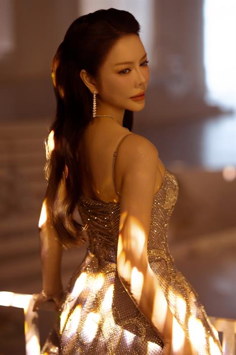Nữ diễn viên, doanh nhân đã khoe trọn vóc dáng kiêu sa trong một bộ đầm dạ hội ấn tượng, tôn vinh vẻ đẹp sang trọng và đẳng cấp của cô.
