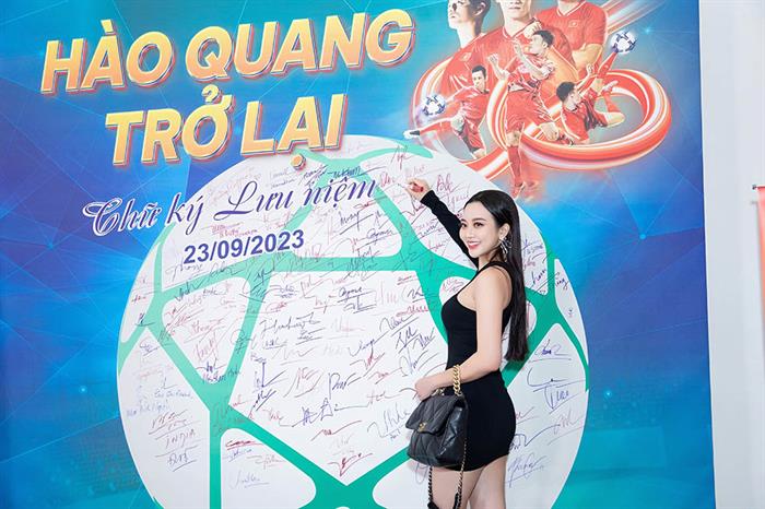 Tintuc - Vừa qua, Á hậu Thư Đình xuất hiện tại sự kiện “Bóng đá Việt – Kiệt tác số “. Nữ MC xinh đẹp diện trang phục đen ôm sát người với vóc dáng chuẩn vì thường xuyên tập luyện thể dục rất phù hợp với tính chất của sự kiện.