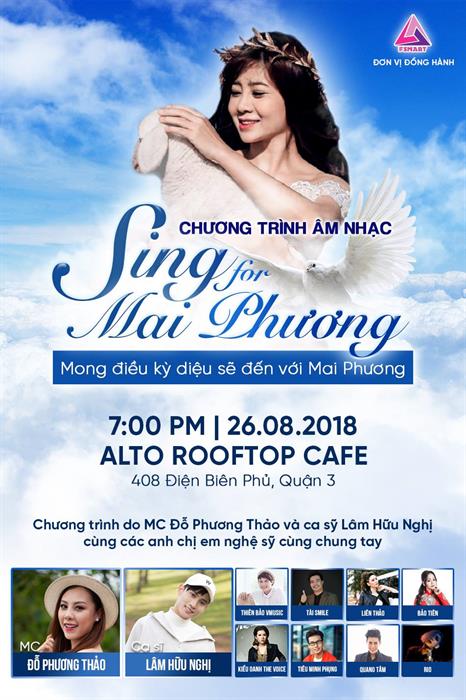 Sắp tới đây, Chủ nhật vào lúc 19:00 -22:00 tại Alto Coffee – Café sân thượng 408 Điện Biên Phủ P11, Q10 TP HCM sẽ diễn ra chương trình ca nhạc từ thiện Sing For Mai Phương với thông điệp