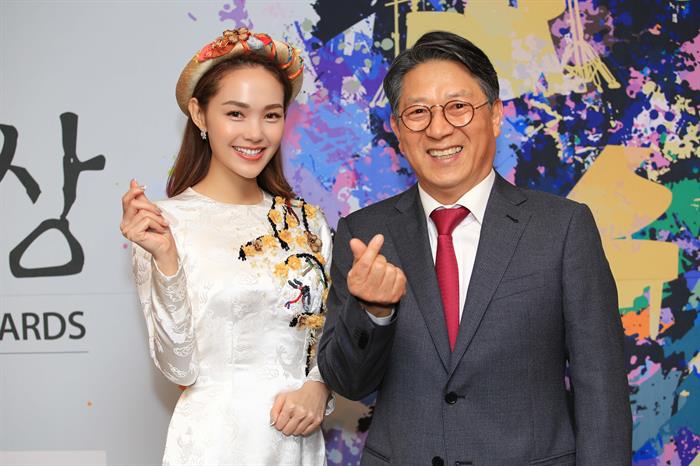 Minh Hằng và chủ tịch Edaily Mr Kwak Jae Seon
