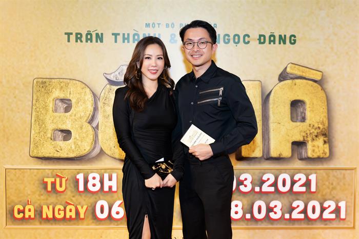 Tintuc - Vừa qua, hoa hậu Thu Hoài cùng hôn phu là doanh nhân Tống Trí đã sánh đôi tới dự buổi công chiếu bộ phim “Bố già” của Trấn Thành tại TP.HCM.
