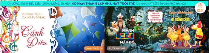 Theop đó, chương trình sẽ thông tin về các hoạt động chào mừng kỉ niệm 40 năm thành lập Nhà hát Tuổi trẻ với Tuần lễ biểu diễn các chương trình đặc sắc của Nhà hát Tuổi trẻ tại Hà Nội từ ngày 5/4 đến 10/4/2018.