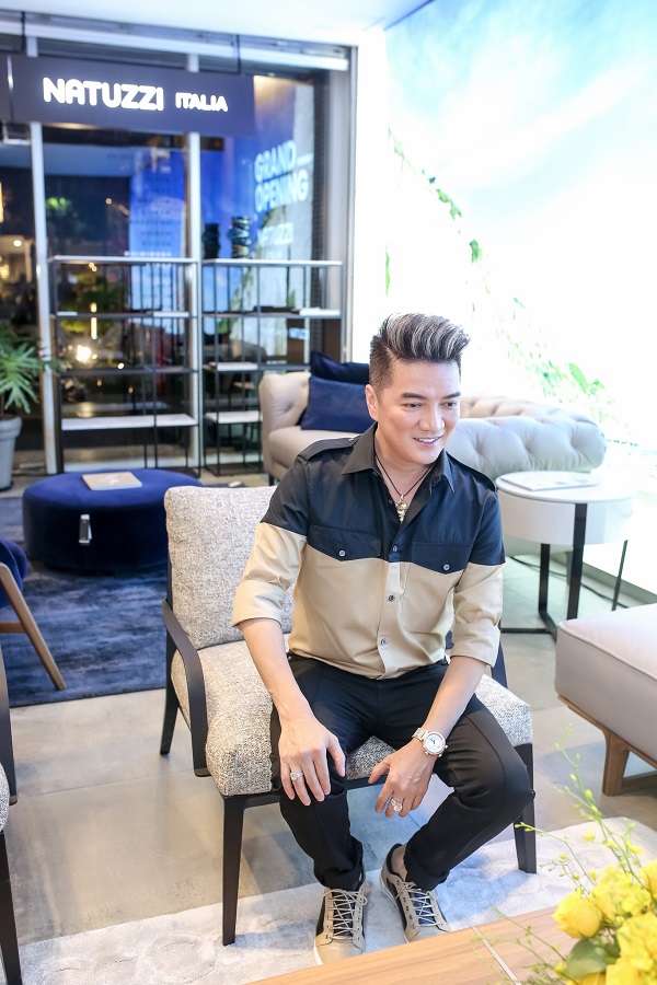 Ông hoàng nhạc Việt – Đàm Vĩnh Hưng là một trong những người bạn thân thiết của doanh nhân Dương Quốc Nam, dù bận rộn với công việc, anh cũng tranh thủ ghé qua và chúc mừng khai trương. Anh chia sẻ: “Natuzzi quả là một tuyệt tác, từng thiết kế đều hoàn hảo, chắc chắn đây sẽ là lựa chọn hàng đầu cho căn nhà mới của Hưng”.