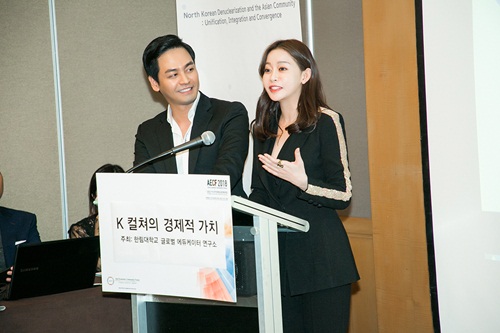 Theo đó, cả hai góp mặt ở AECF 2018 với vai trò diễn giả, đồng thời để lại ấn tượng mạnh nơi các đại biểu bằng phần thuyết trình về sức ảnh hưởng của văn hoá, nghệ sĩ Hàn Quốc đến giới trẻ Việt Nam. Mở đầu bài phát biểu, Hoa hậu Hải Dương cho biết vì ông xã mình là người Hàn Quốc và HD Group kinh doanh về xuất nhập khẩu, sản phẩm, công nghệ, thực phẩm làm đẹp, sức khoẻ, lẫn truyền thông... nên có rất nhiều cơ hội để thấy rõ bức tranh phát triển kinh tế - văn hoá vượt bậc trong những năm qua. Trong đấy, sức ảnh hưởng của văn hoá, nghệ sĩ Hàn Quốc tới giới trẻ Việt Nam là điều không phải bàn cãi.