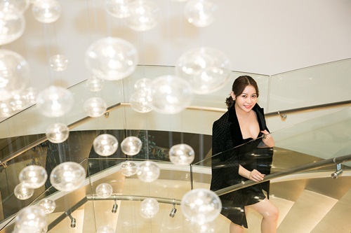 Trong khi đó, Hoa hậu Hải Dương “đốn tim” người đối diện bằng nét tươi trẻ, thần thái rạng rỡ, cùng nụ cười toả nắng