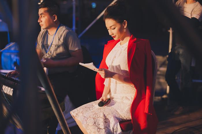 Tại sự kiện, cô có dịp hội ngộ Đức Phúc và các ca sĩ đến từ Hàn Quốc. Quỳnh Chi cho biết, chính cô cũng rất yêu mến và hâm mộ Đức Phúc khi xem những clip hài hước gần đây của nam ca sĩ.