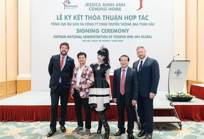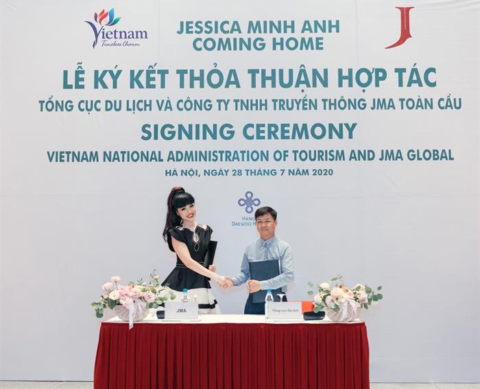 Tintuc - Ngày 28/7/2020 tại Khách Sạn Hà Nội Daewoo, Tổng cục Du lịch Bộ Văn hóa, Thể thao và Du lịch (TCDL) và Công ty TNHH Truyền thông JMA Toàn cầu (Jessica Minh Anh) đã ký Thỏa Thuận Hợp Tác về quảng bá điểm đến, sản phẩm, dịch vụ du lịch Việt Nam ở trong và ngoài nước, góp phần thu hút, kích cầu du lịch nội địa và chuẩn bị phục hồi thị trường khách du lịch quốc tế đến Việt Nam.